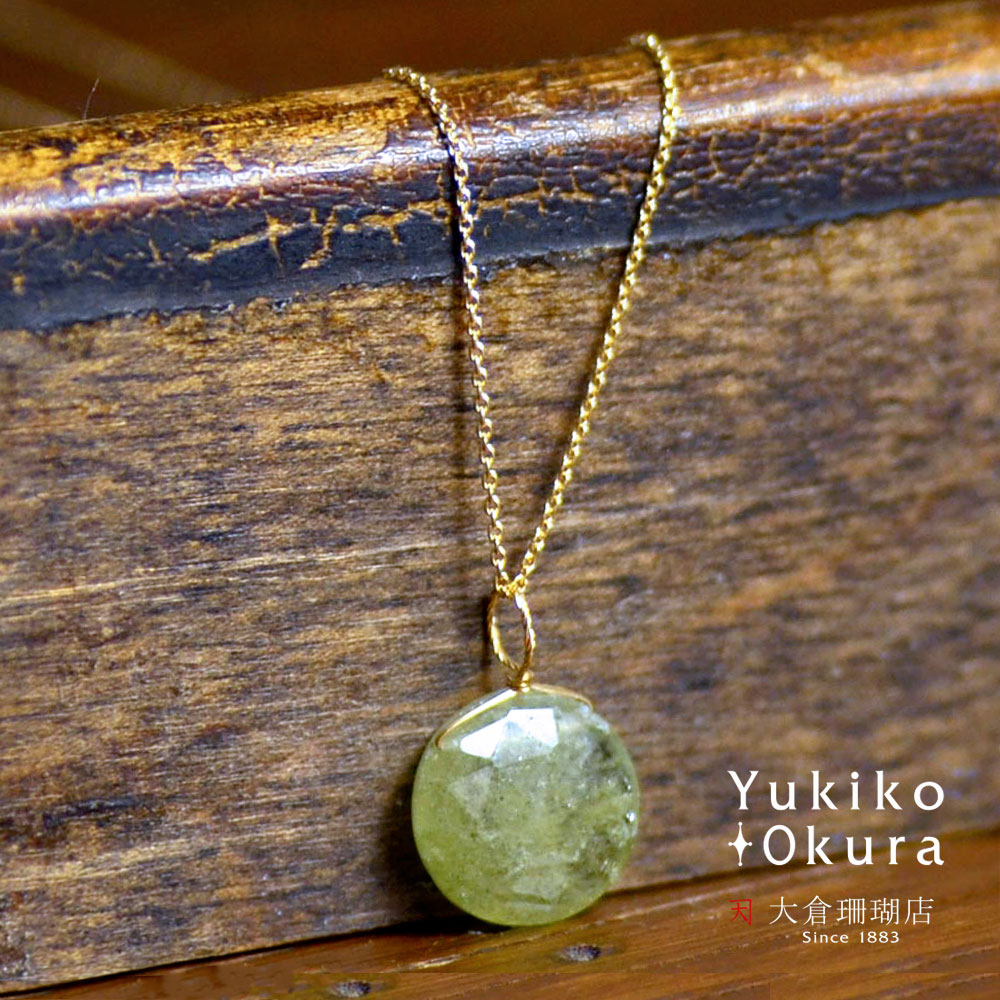 グリーンガーネット チャーム ペンダント トップ 18金 K18 コインカット 天然石 ユキコ オオクラ ブランド レディース ジュエリー 送料無料 1月誕生石